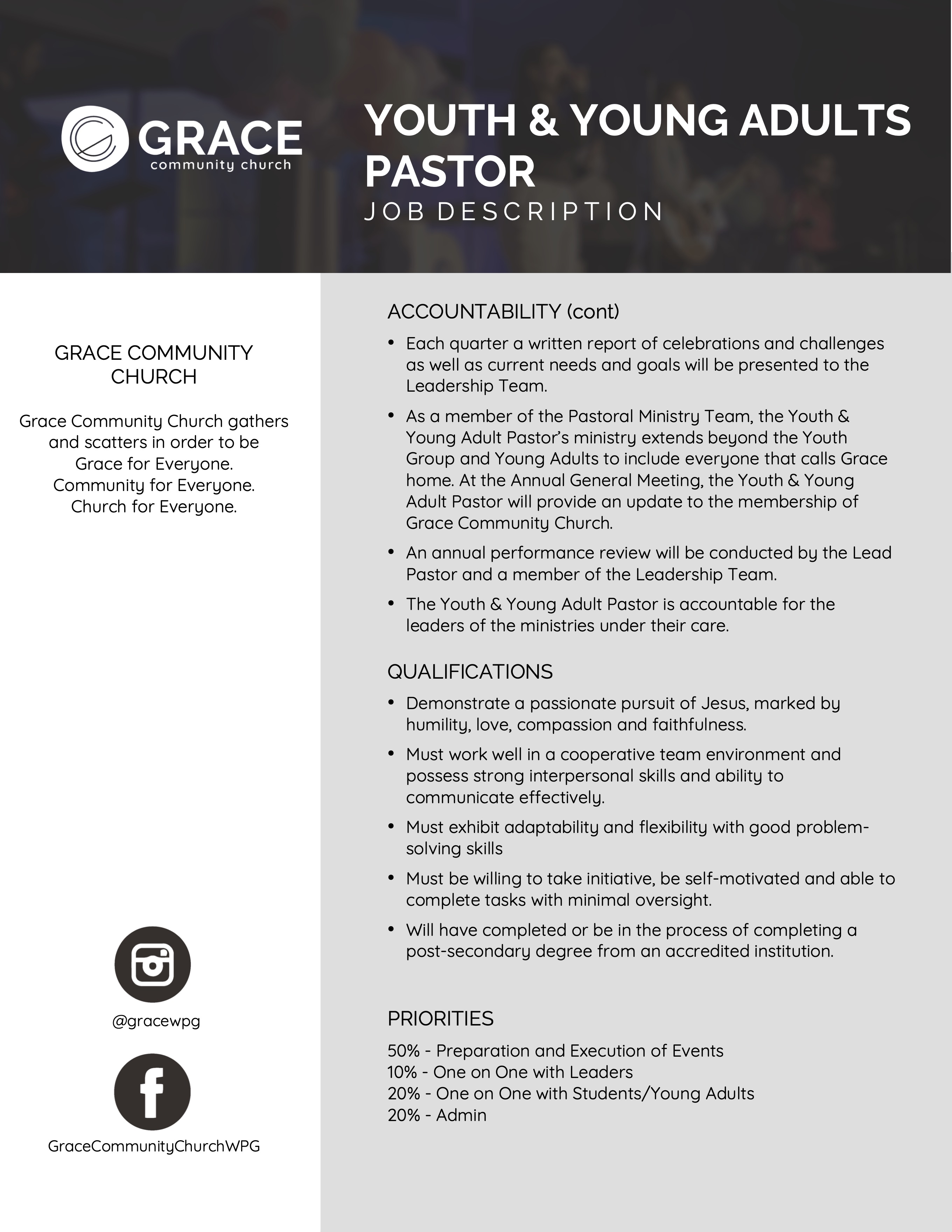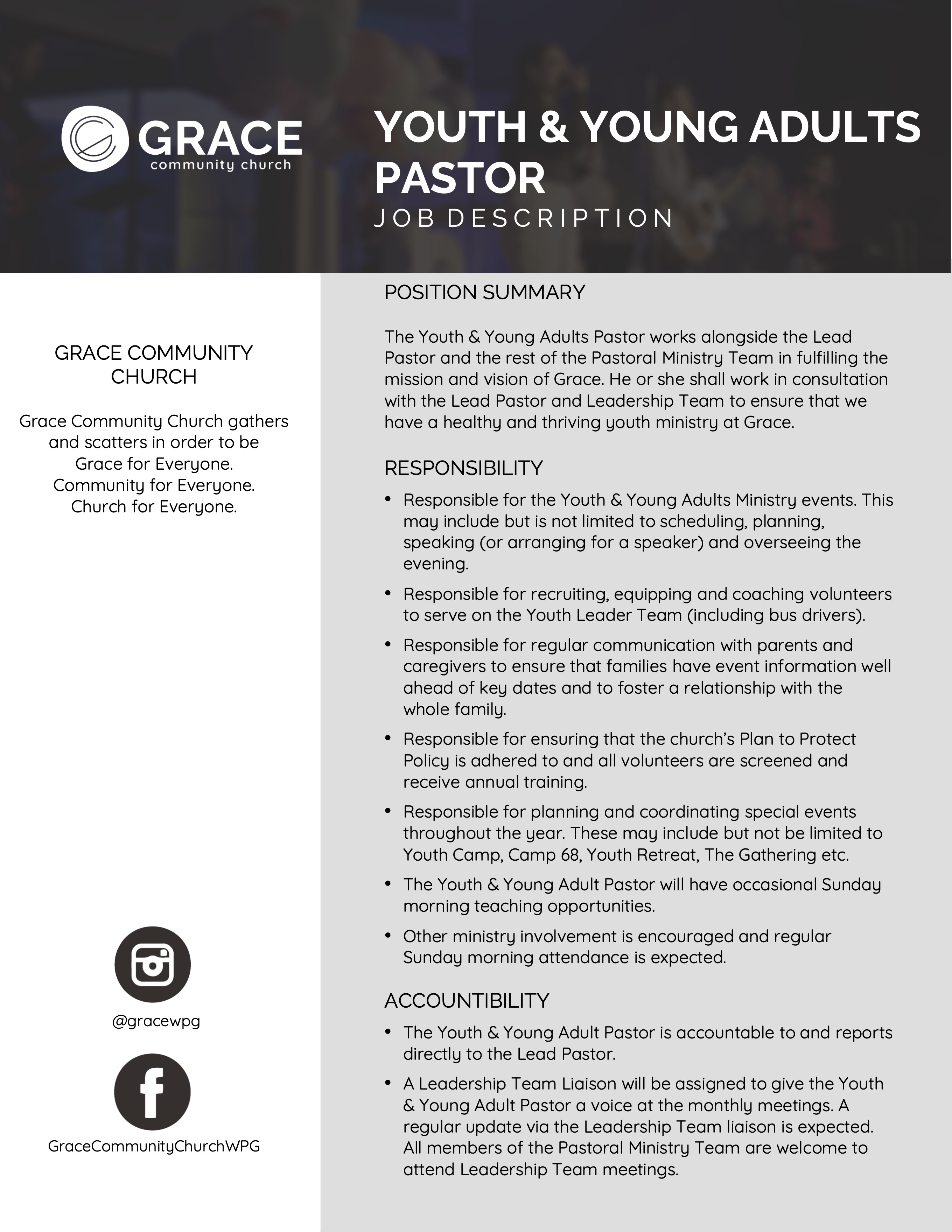 Youth & Young Adults Pastor